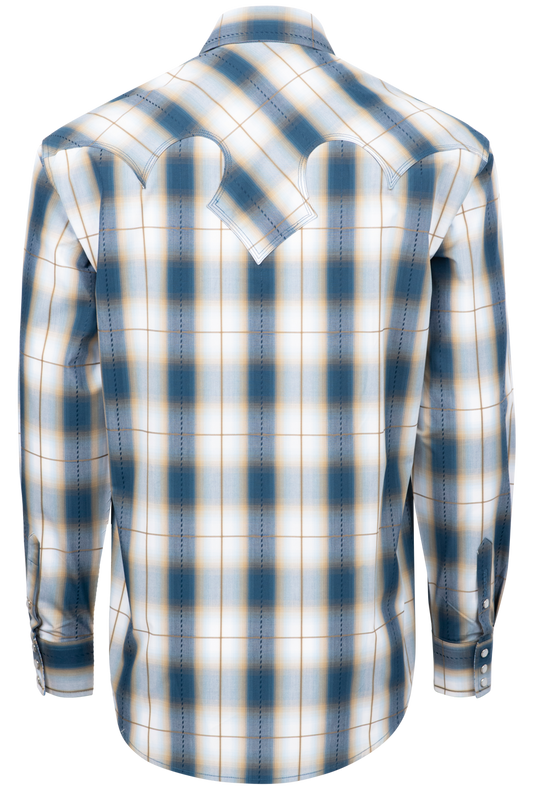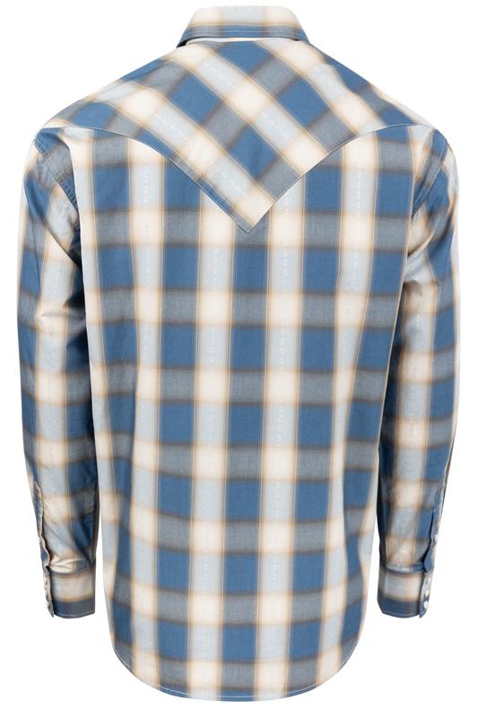 Stetson Men's Plaid Snap Front Shirt - Denim Blue