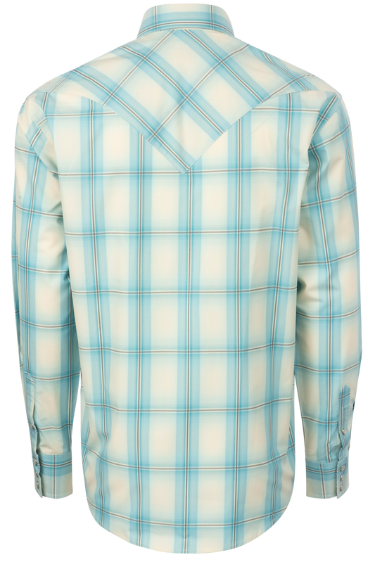Stetson Men's Plaid Snap Front Shirt - Aqua Ombre