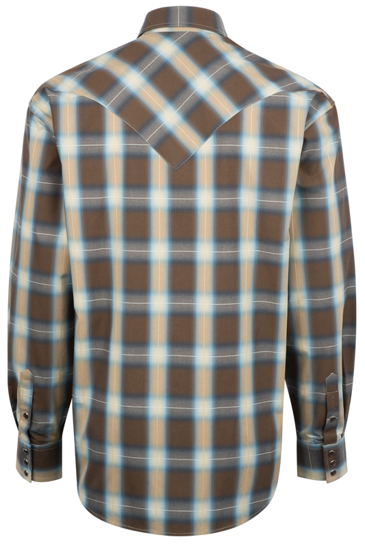 Stetson Men's Plaid Snap Front Shirt - Brown Ombre