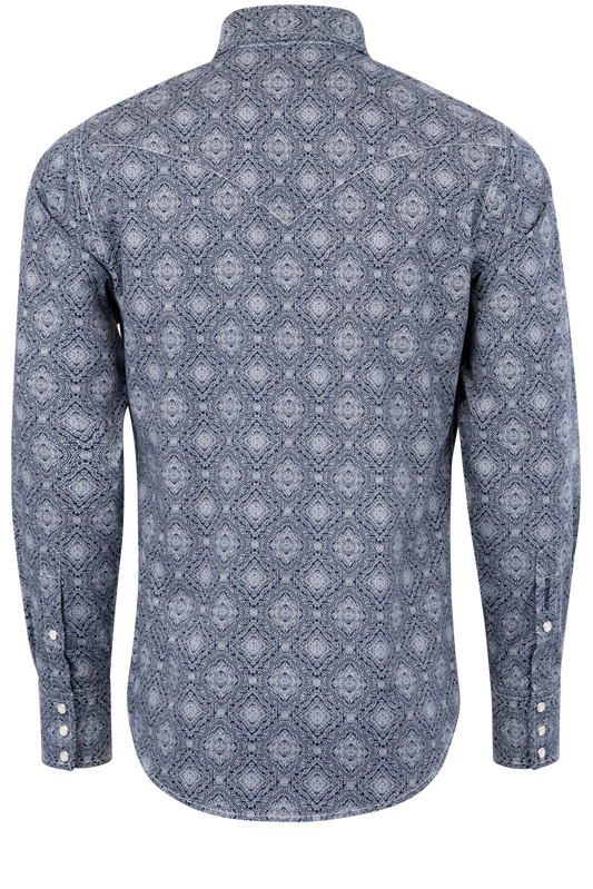Stetson Men's Rugged Medallion Print Pearl Snap Shirt - Blue