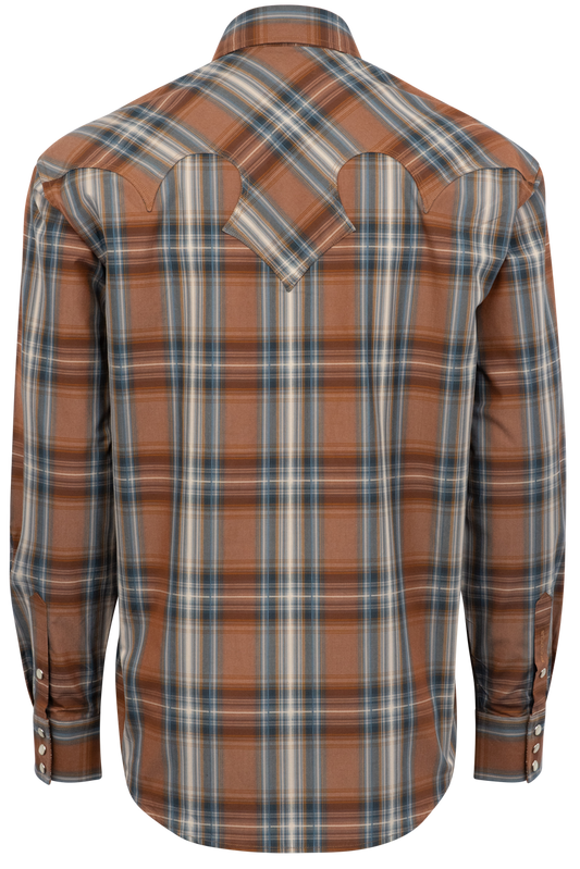Stetson Men's Plaid Snap Front Shirt - Copper