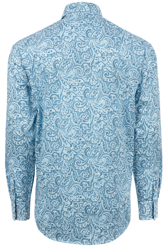 Stetson Men's Tooling Paisley Pearl Snap Shirt - Blue