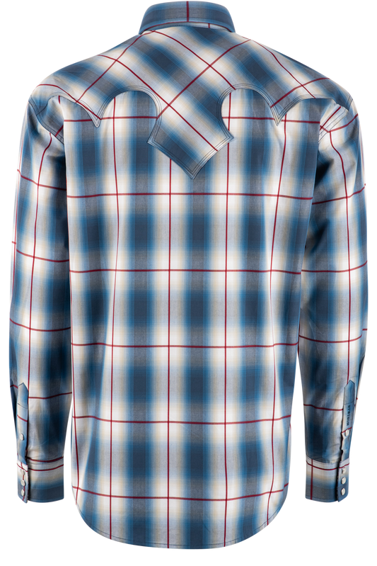 Stetson Ombre Plaid Long Sleeve Pearl Snap Shirt - Blue