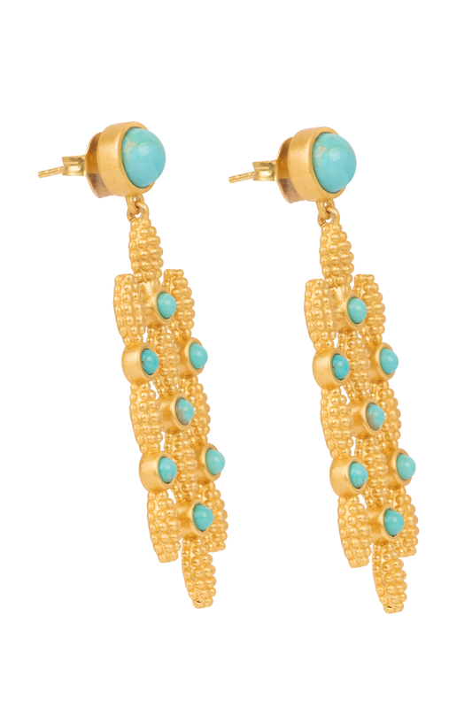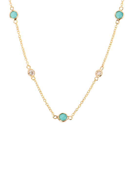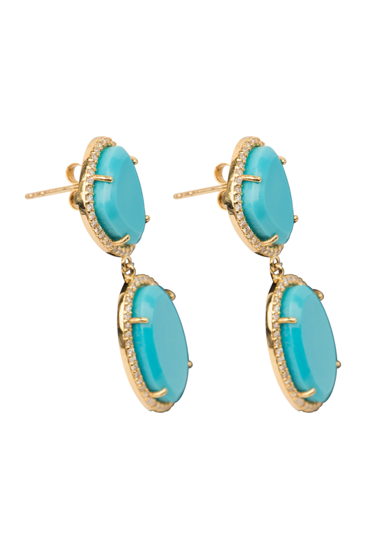 Christina Greene 14K Gold Turquoise Earrings with White Diamonds