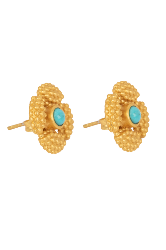 Christina Greene 14K Gold & Turquoise Stud Earrings with White Diamonds