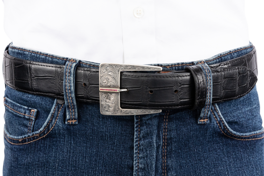 Clint Orms 1.5" Engraved Silver Buckle Set