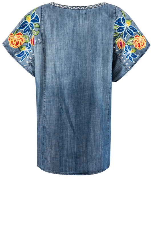 Double D Ranch Denim Floral Embroidery Top