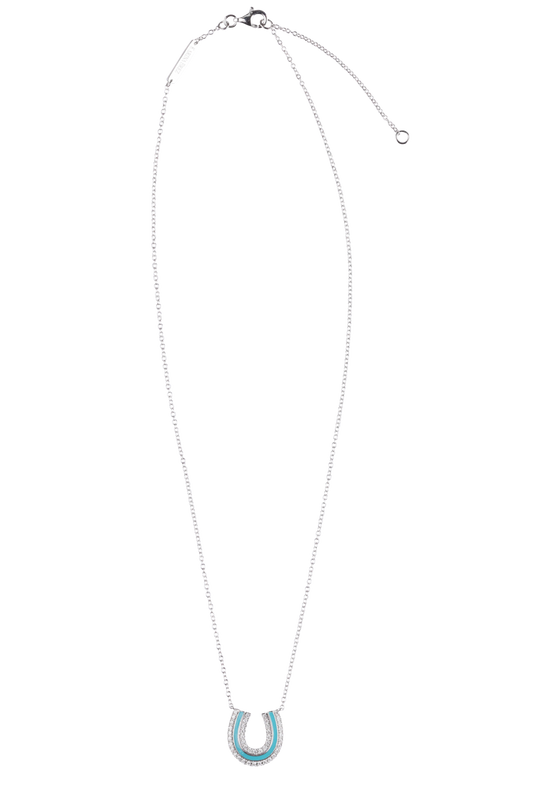 Karina Brez Lucky Horseshoe Necklace - Turquoise & Diamond