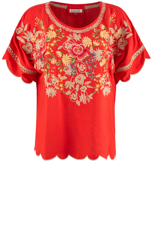 Paparazzi Red Embroidered Tunic Top
