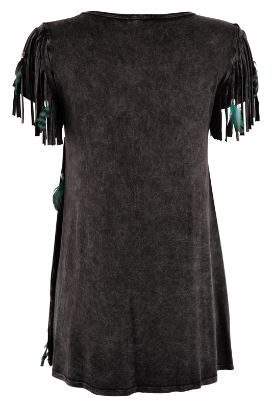 Pat Dahnke Black Feather Fringe Top