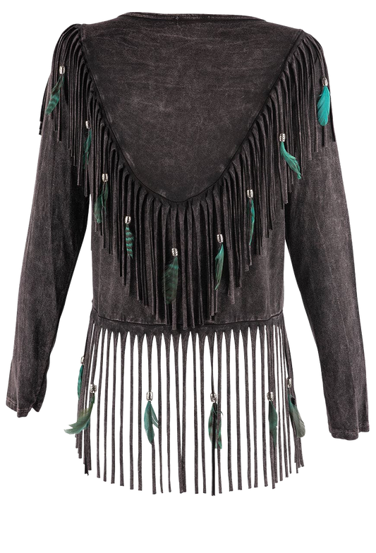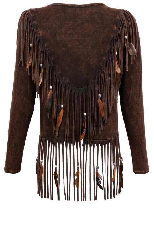 Pat Dahnke Feather Fringe Shawl Jacket - Brown