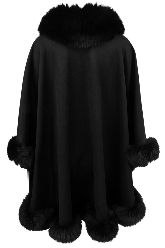 Pinto Ranch Cashmere & Fox Fur Cape - Black