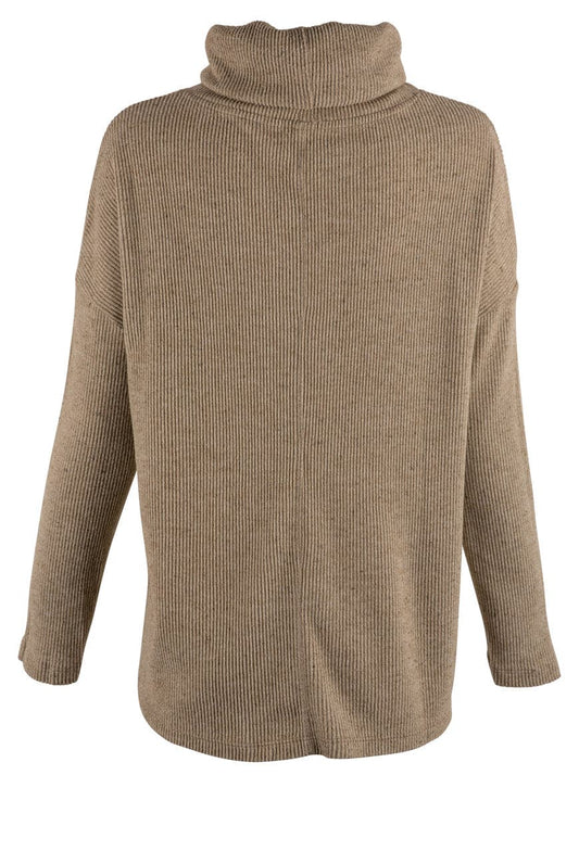 Dylan Sandstone Fuzzy Flecked Cowl Neck Top