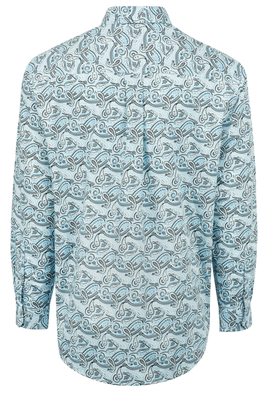 Cinch Paisley Print Button-Front Shirt - Light Blue