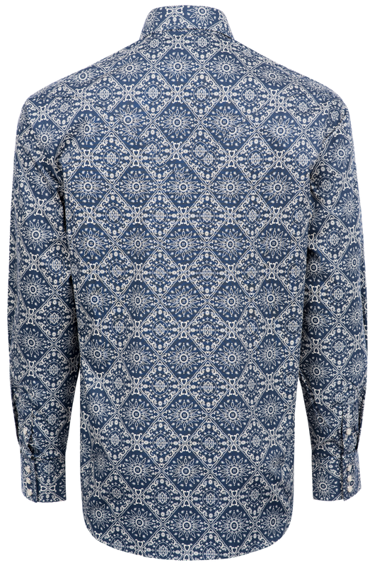 Stetson Men's Bandana Medallion Print Pearl Snap Shirt - Blue