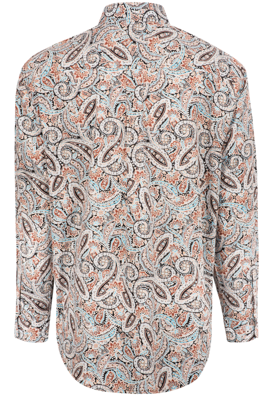 Cinch Button-Front Shirt - Light Brown Paisley