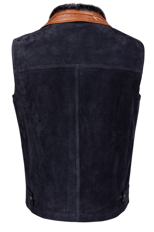 Pinto Ranch Navy Suede and Shearling Vest