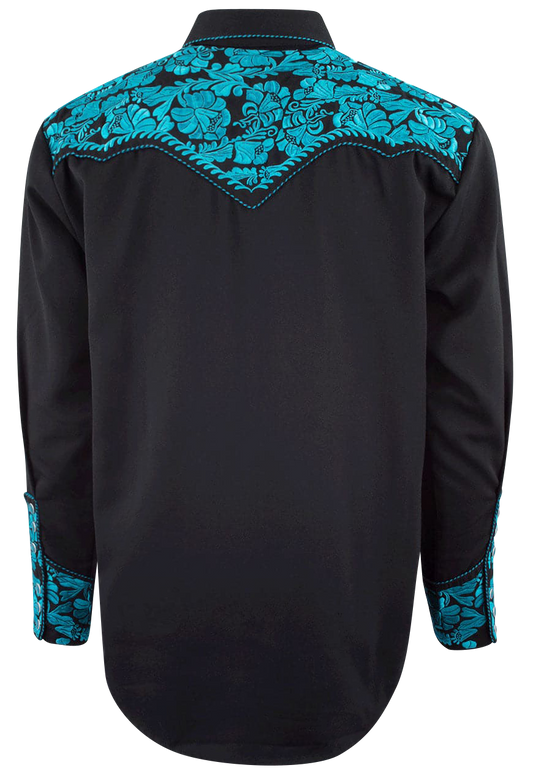 Scully Gunfighter Western Snap Front Shirt - Turquoise/Black