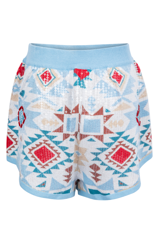 Queen of Sparkles Blue Sequin Aztec Shorts