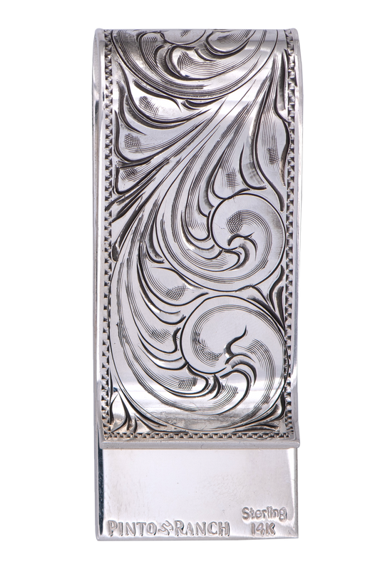 Pinto Ranch Cinco Peso Fully Engraved Money Clip