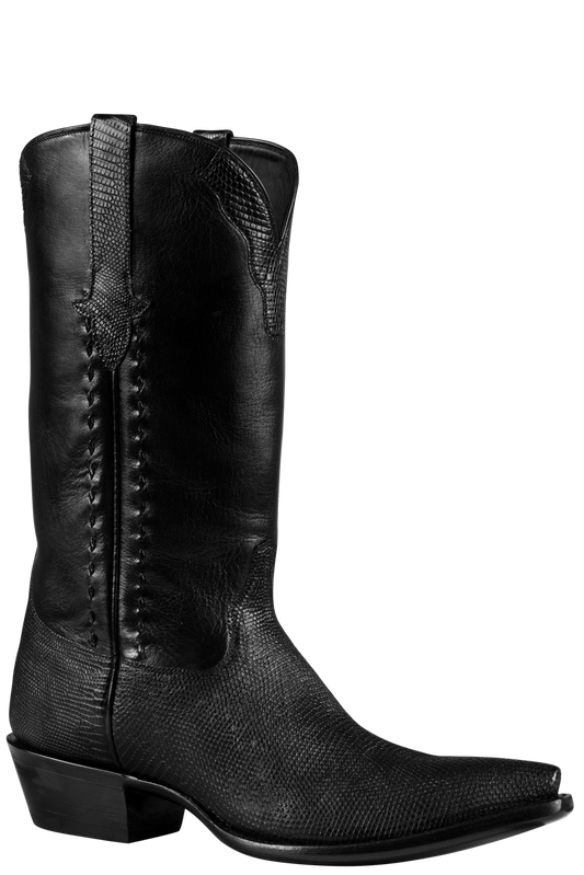 Stallion Lizard & Buffalo Calf Cowboy Boots - Black