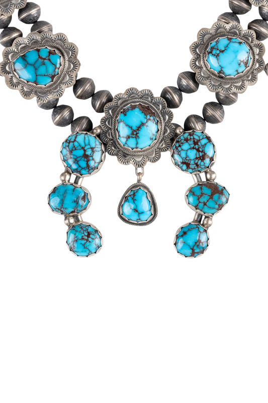 Sterling Silver & Prince Turquoise Squash Blossom Necklace