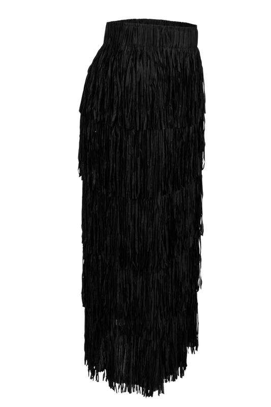 W.A.Y. Tiered Fringe Skirt - Black