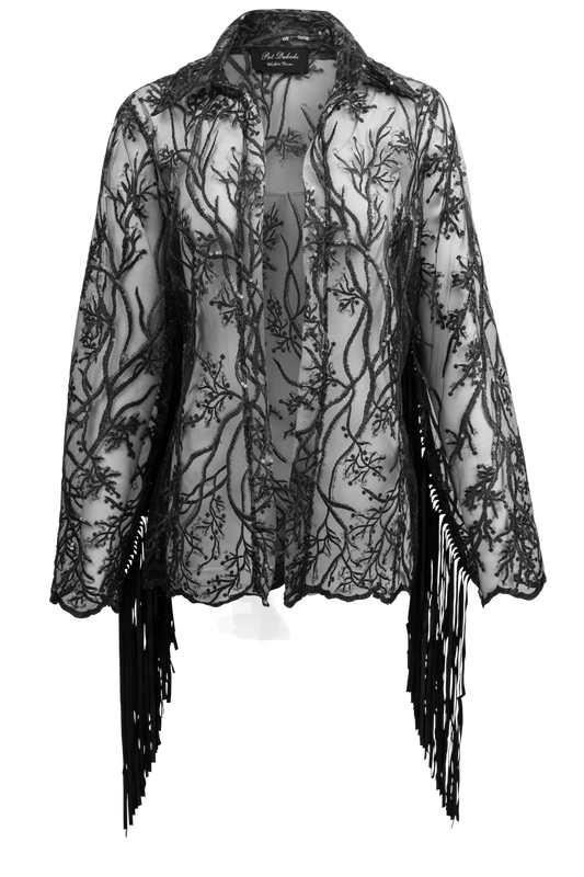 Pat Dahnke Black Fringe Shawl Jacket