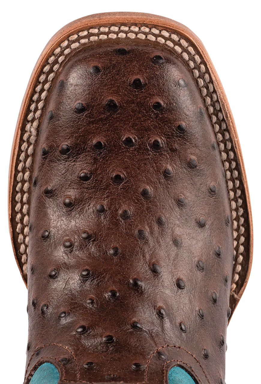 Anderson Bean Turquoise & Chocolate Ostrich Print Boots