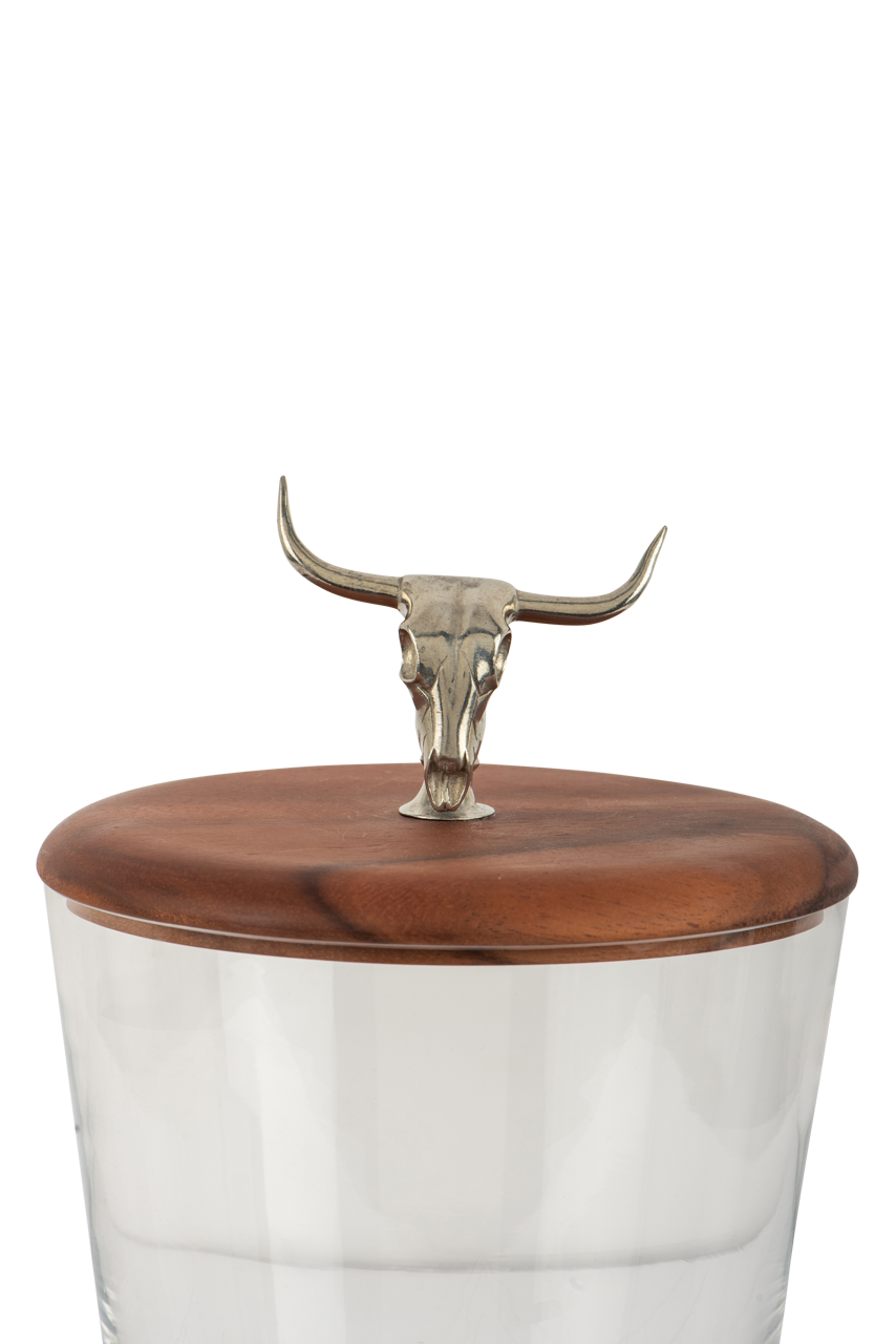 • This beautiful glass jar holds enough ice cubes to chill a bottle of wine and the high-quality pewter cow skull handle is intricately carved and provides a slightly modern touch to the design. All together, this ice bucket has a style that fits for everyday life.