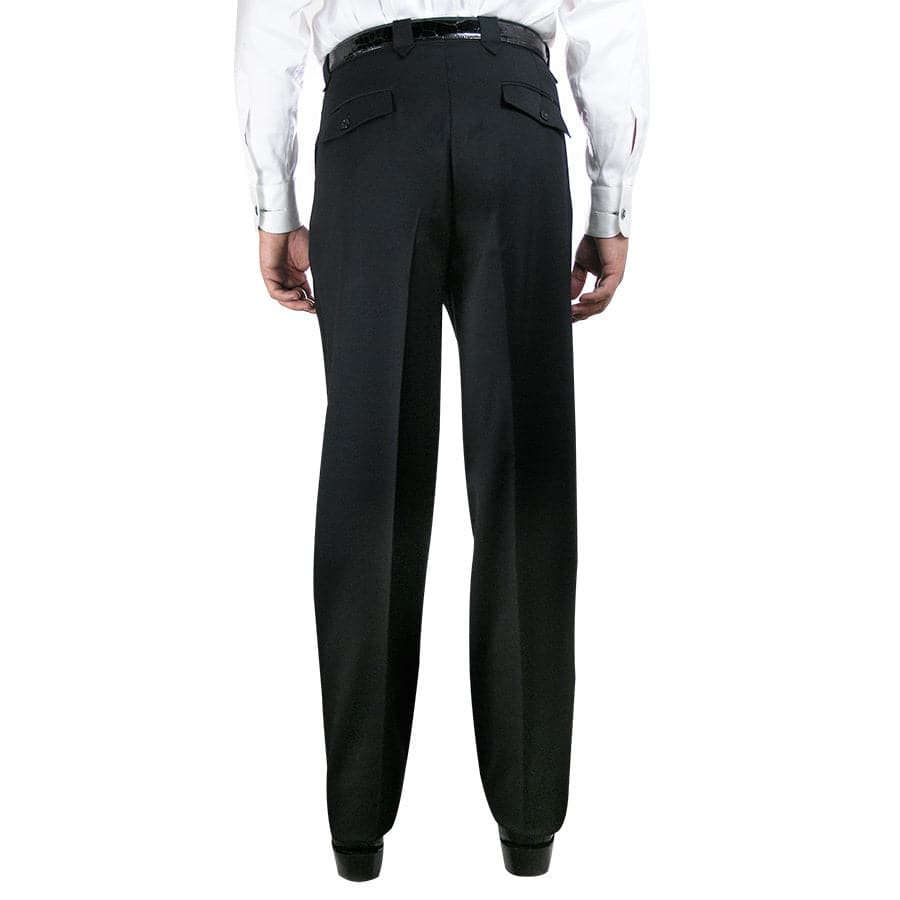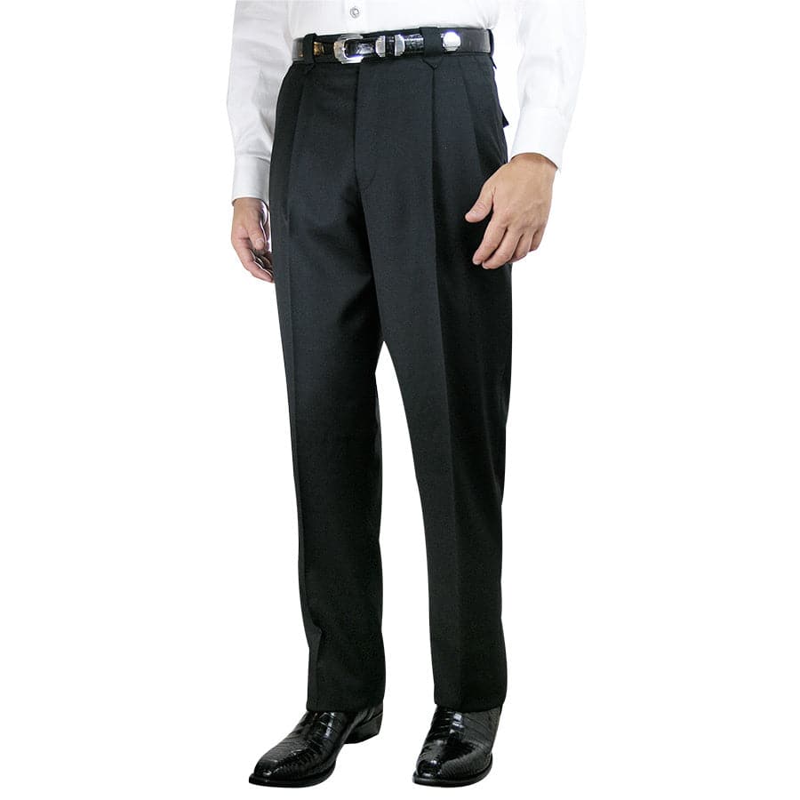 Dress up your style with these men's Western dress pants with pleats online at Pinto Ranch. The Western dress slacks for men are 100% wool black pleated-front pants and feature Western belt loops and pockets and open bottoms. Dry Clean only.