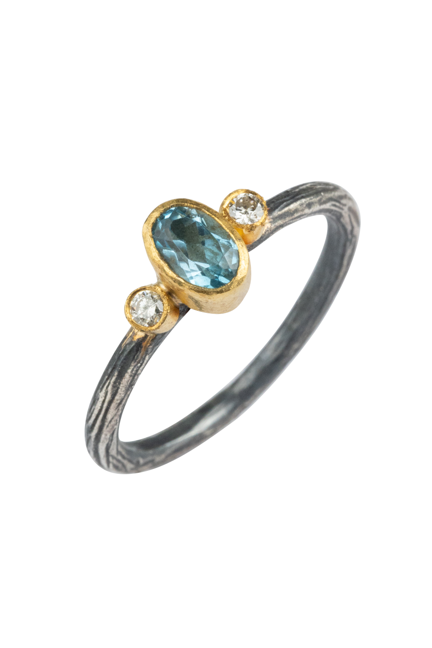 • Material: Blue topaz, diamonds, silver, 24K yellow gold