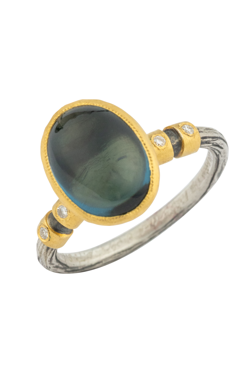 • Material: Blue topaz, diamonds, silver, 24K yellow gold