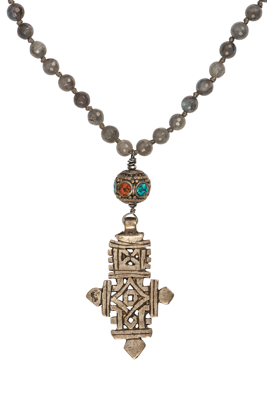 • Beaded necklace with a hand crafted Ethiopian cross