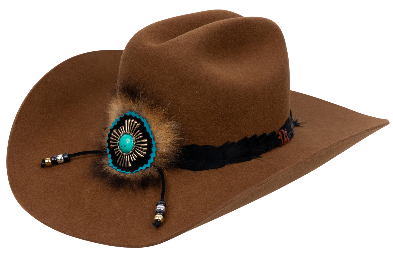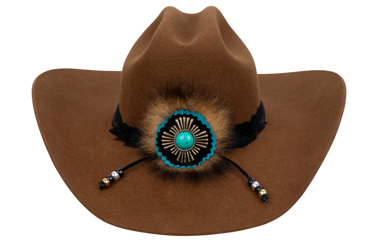 - Custom designed concho with leather cut-outs