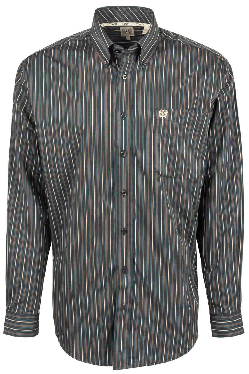 Cinch Striped Button-Front Western Shirt - Charcoal