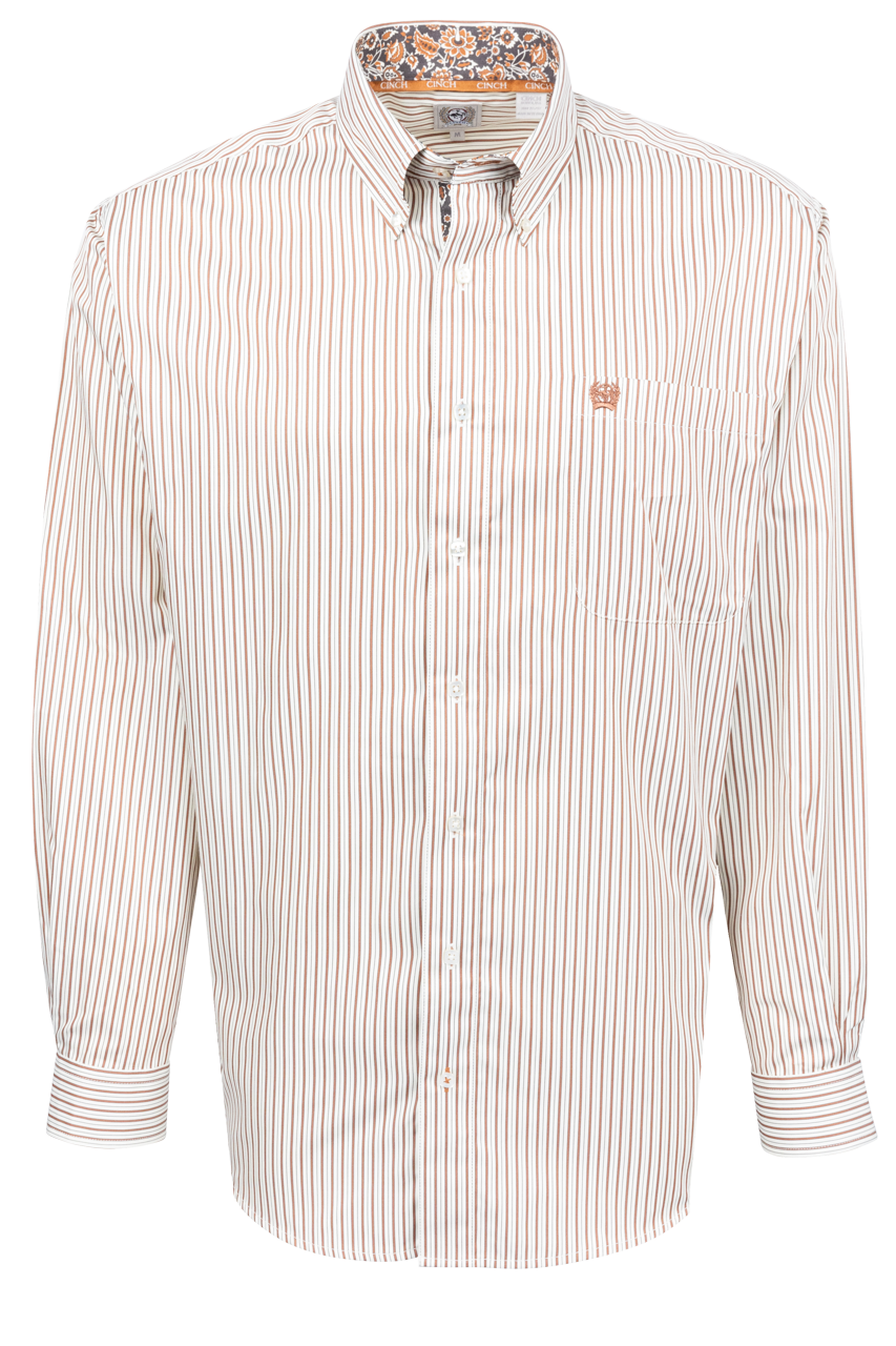 Cinch Striped Button-Front Shirt - Cream
