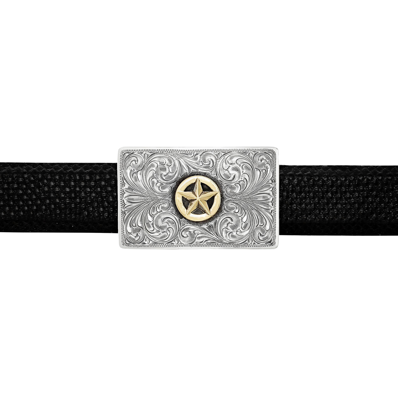 • Engraved trophy buckle with 14K yellow gold star design
