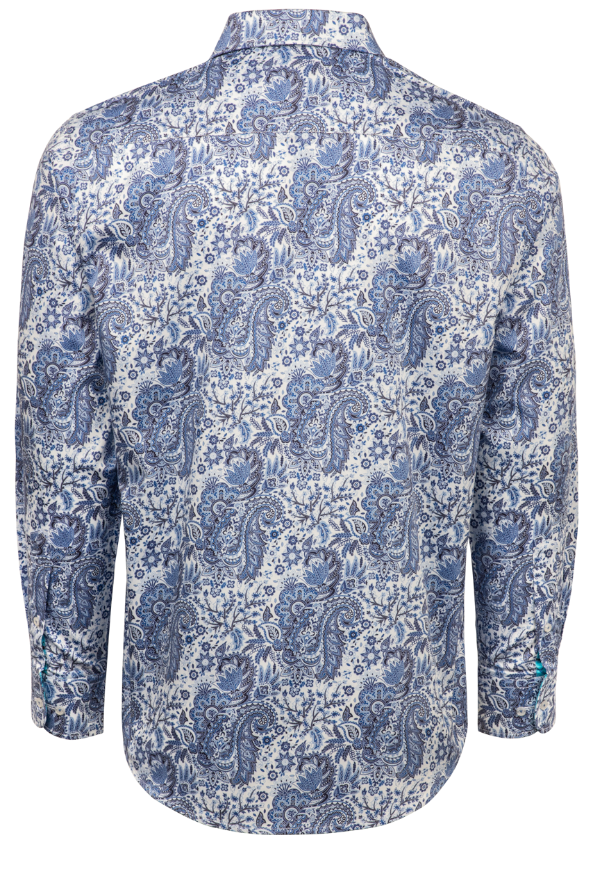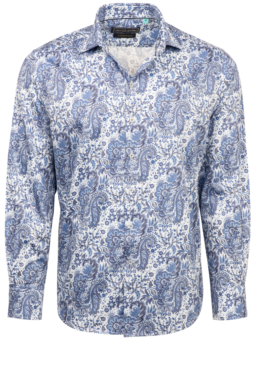 • Long sleeve blue paisley shirt