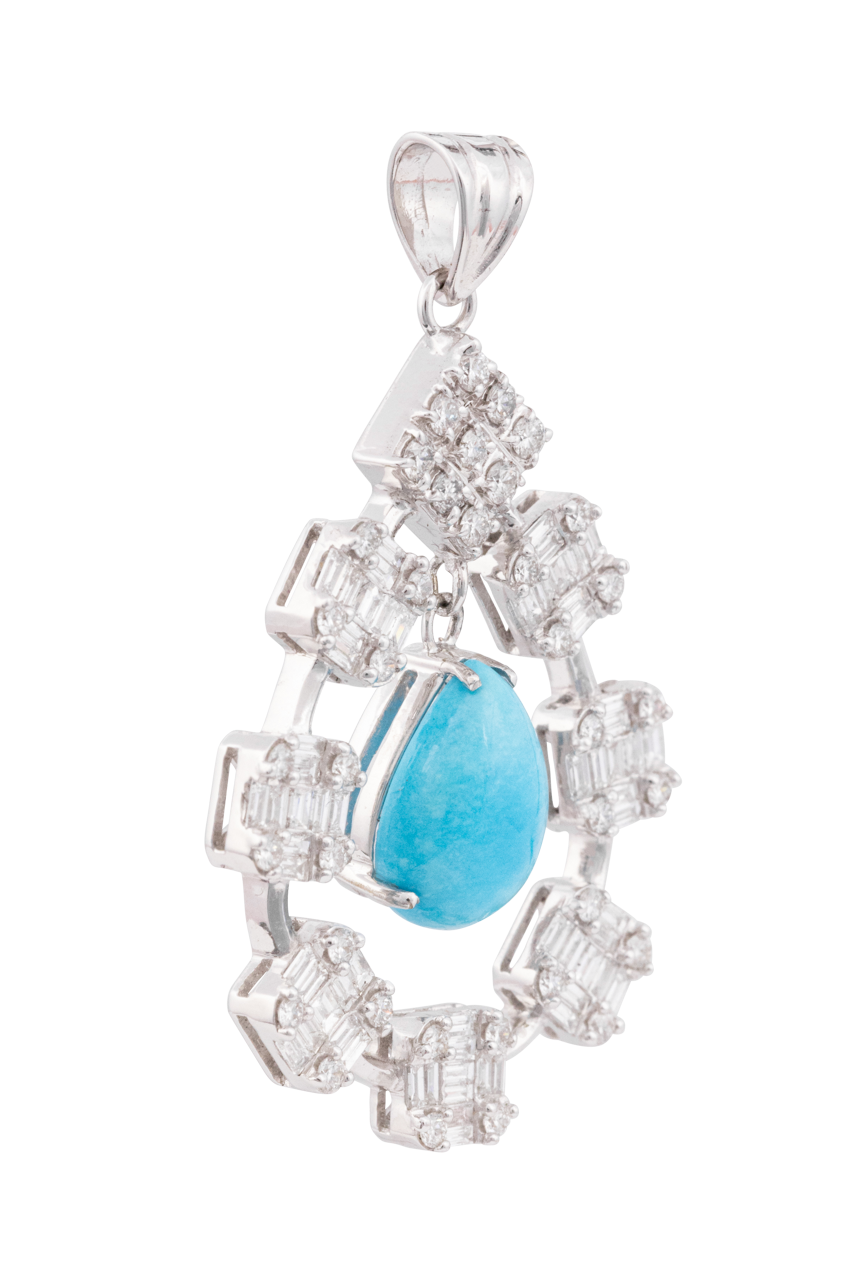 • Material: Sleeping beauty turquoise, diamonds, 18K white gold