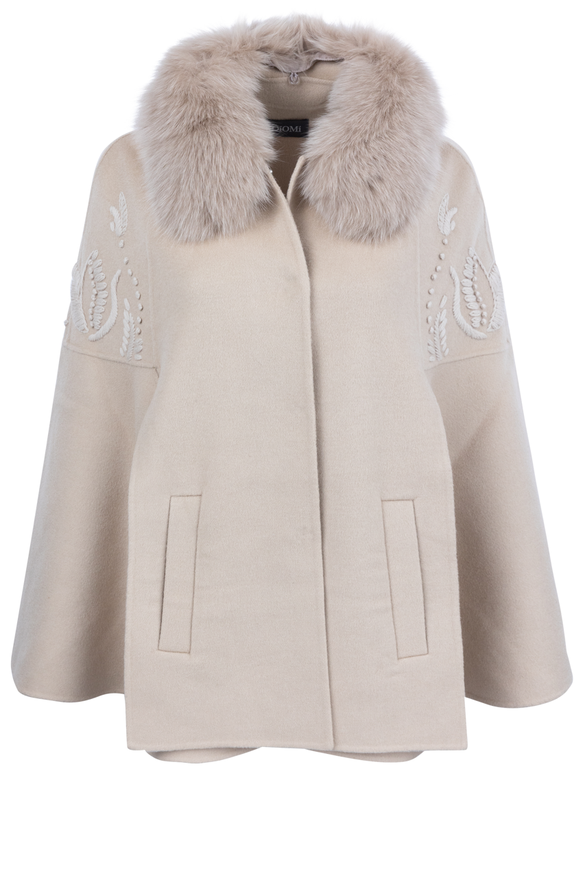 • Cream cape with a removable fur collar