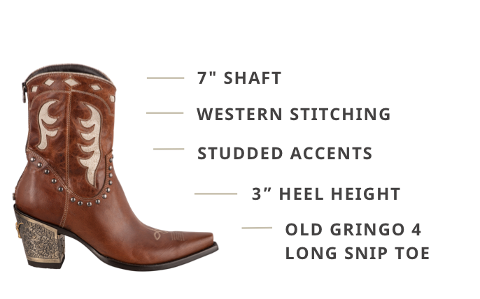 - Heel Type: Old Gringo 'tall riding sintino' heel