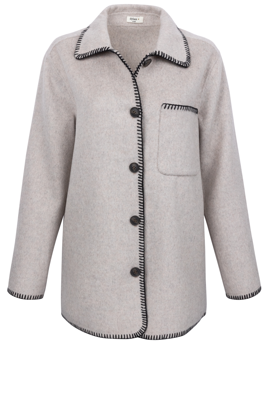 • Contrasting whipstitch on collar, placket, bottom & cuff