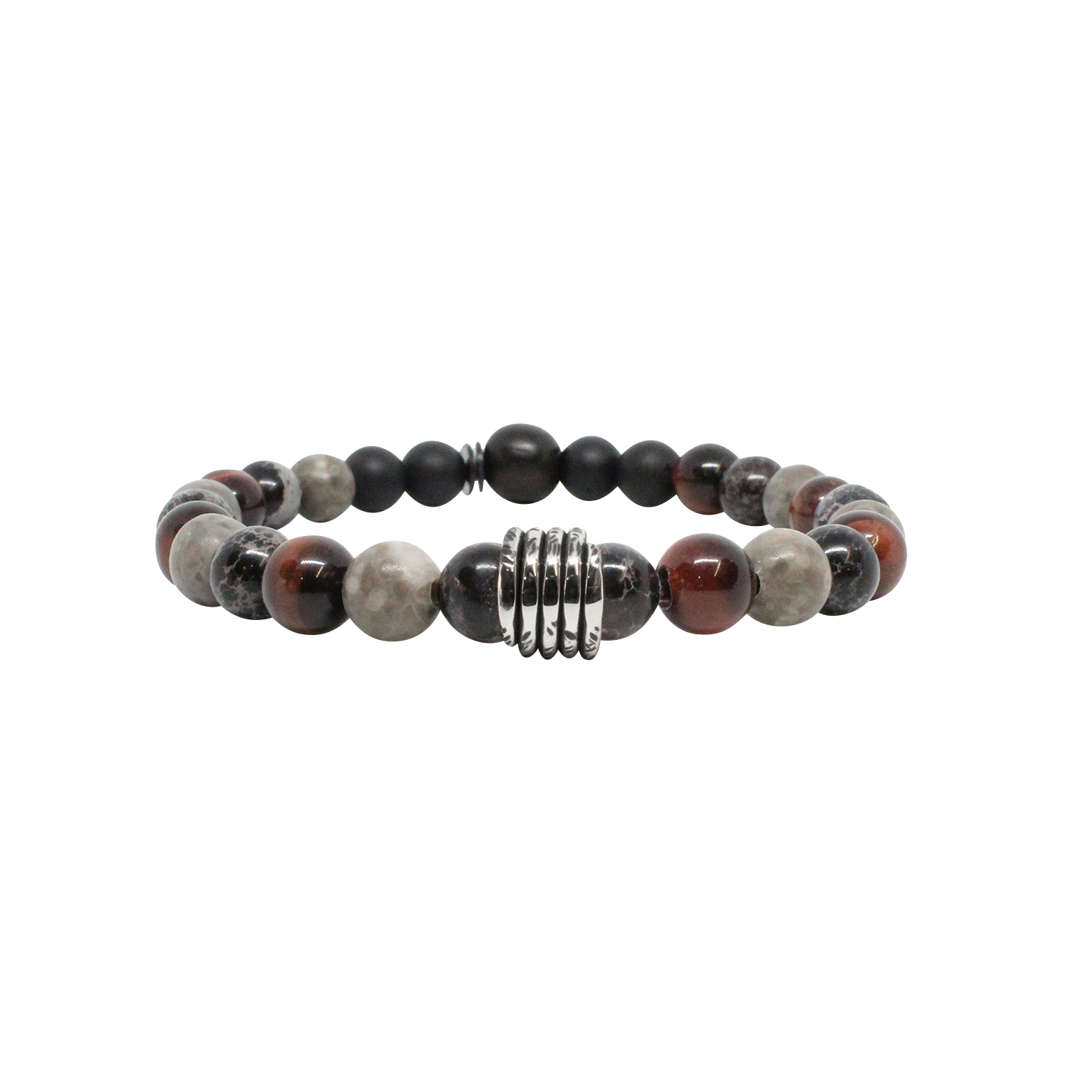 • Material: Red tiger's eye, gray mai jasper, sterling silver