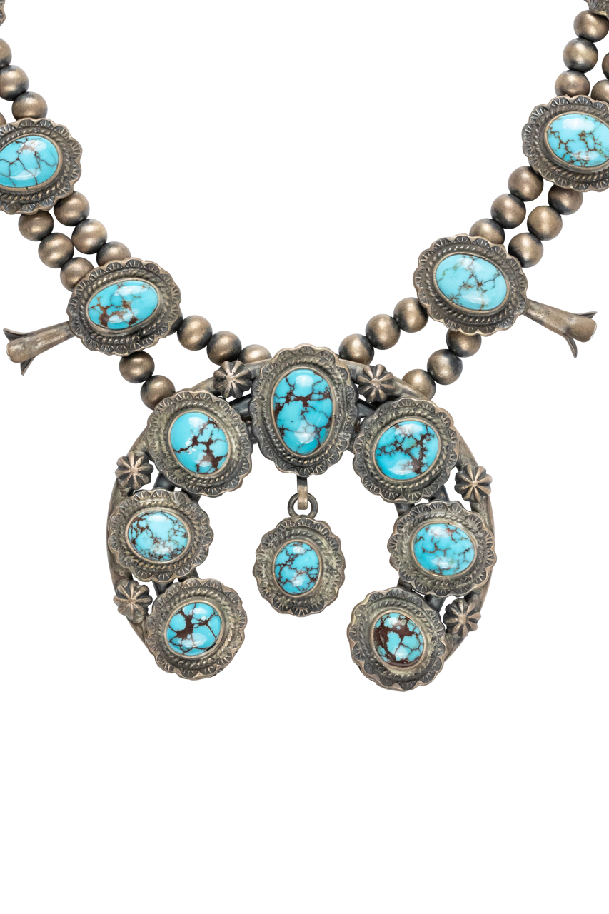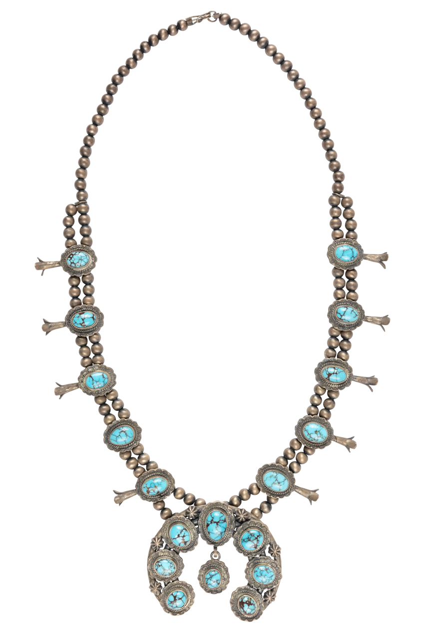 • Material: Navajo pearls, kingman turquoise, sterling silver