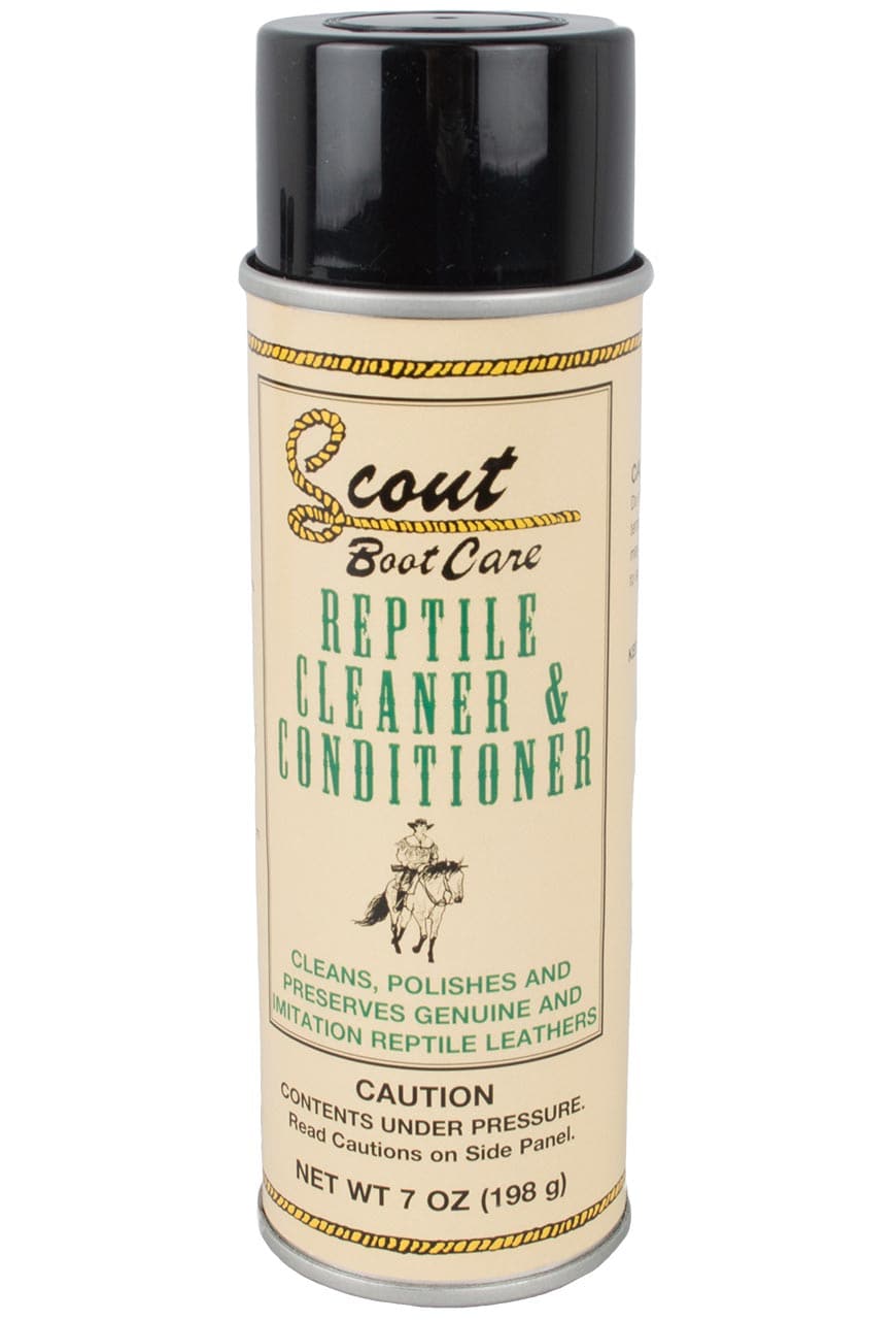• Scout Reptile Cleaner and Conditioner is formulated to clean and preserve all genuine and imitation reptile leather. The cleaner comes in an easy to use spray that removes dirt. Simply apply to your leather and let the foam dissolve to lift dirt and grime.