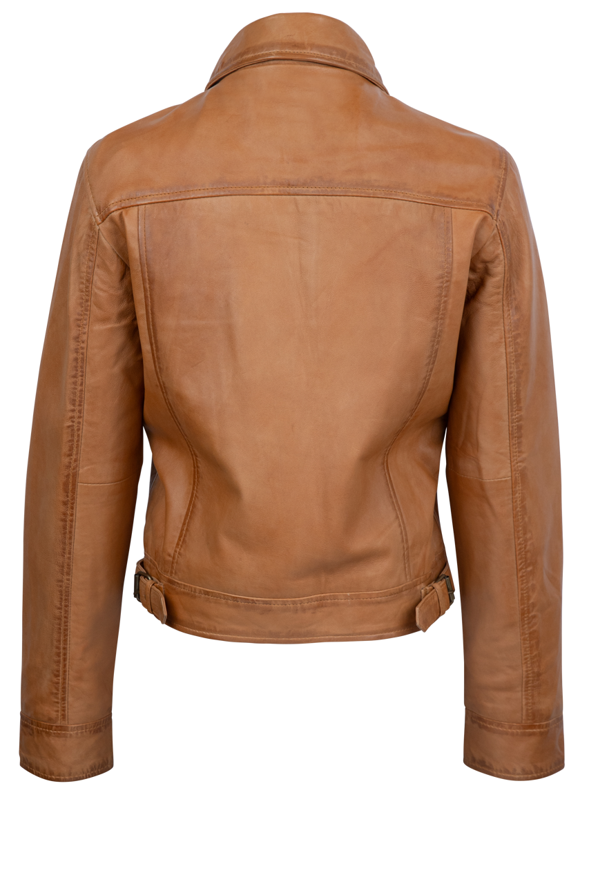 • Classic leather jacket in a caramel colorway