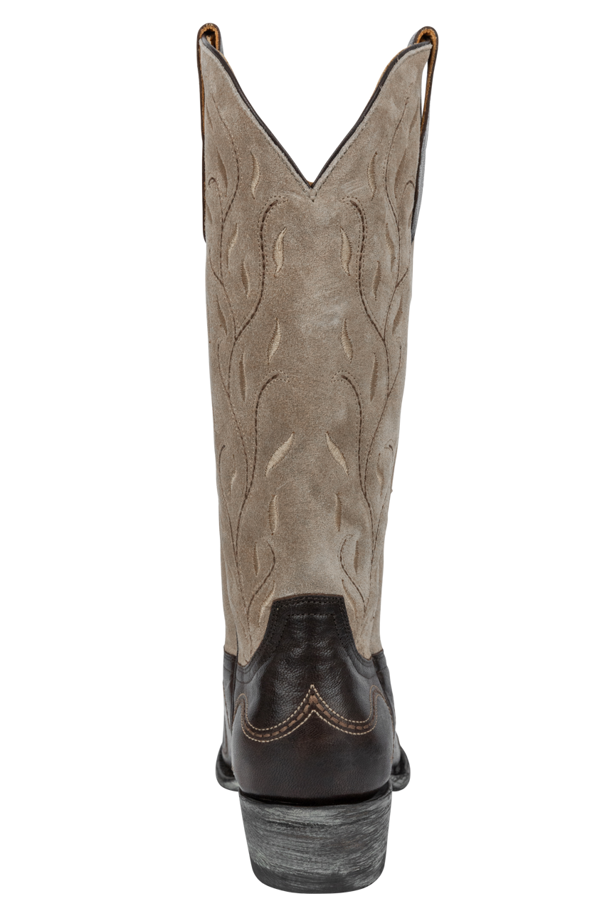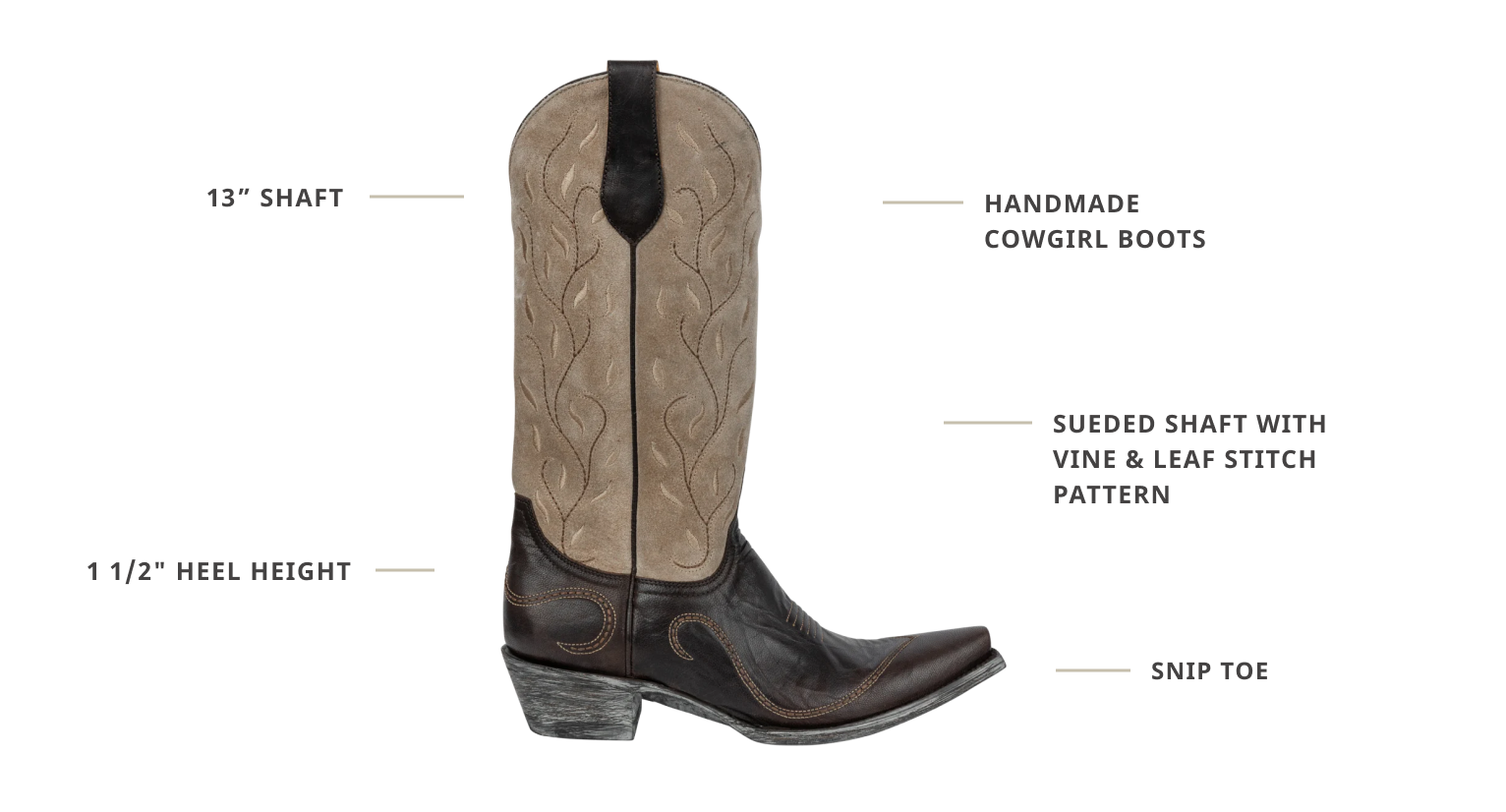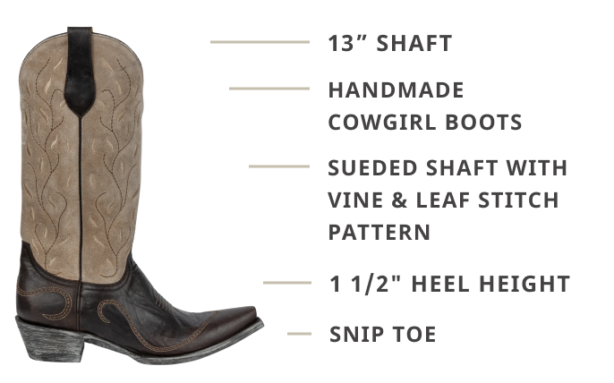 • Sueded shaft with vine & leaf stitch pattern