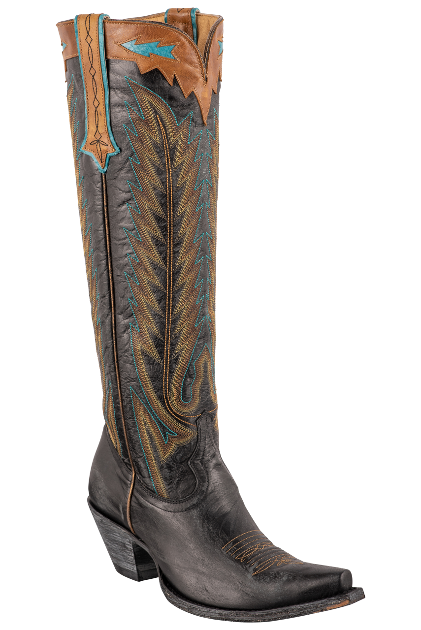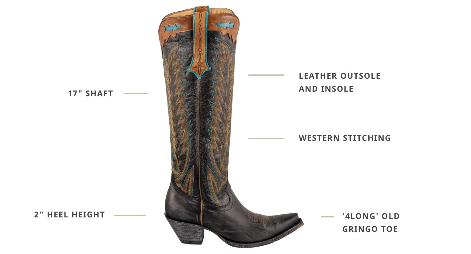 • Fabulous and Fearless: Take your Western fashion sense to new heights in Old Gringo Yucatan Tall Cowgirl Boots. Everything about these handmade stunners raises the bar on quality and comfort. The ultra high 17" black leather shaft is the canvas for amazing colorful Western-inspired stitching that will stand out in a crowd. Even the pull straps feature eye-pleasing details. Moving along, the pointed toe and 2" sintino heel add even more fearless, feminine flair.