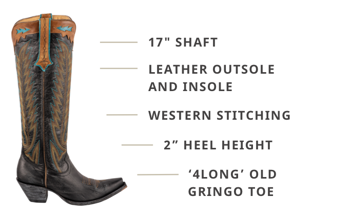 • Toe Type: Old Gringo '4 long' toe (pointed)